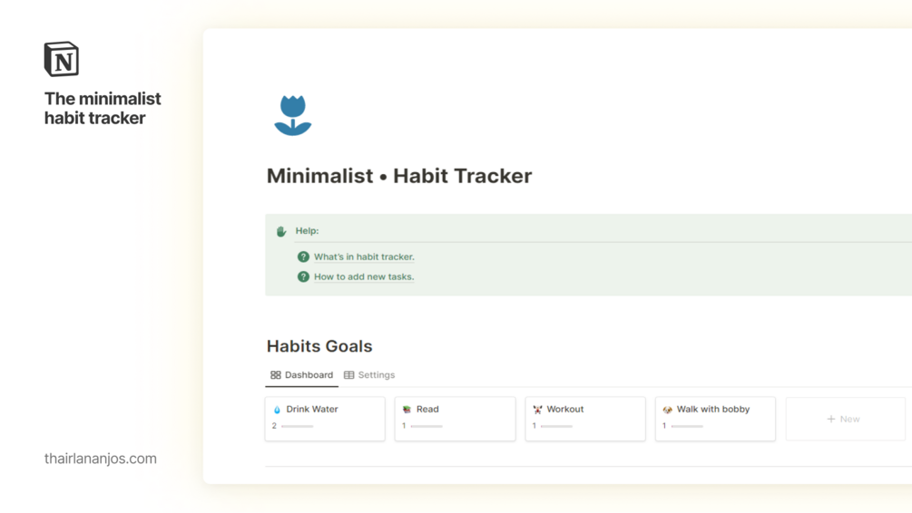 Notion Minimalist Habit Tracker is a template for people who need to implement habits in a quick and simple way, and in a few steps.